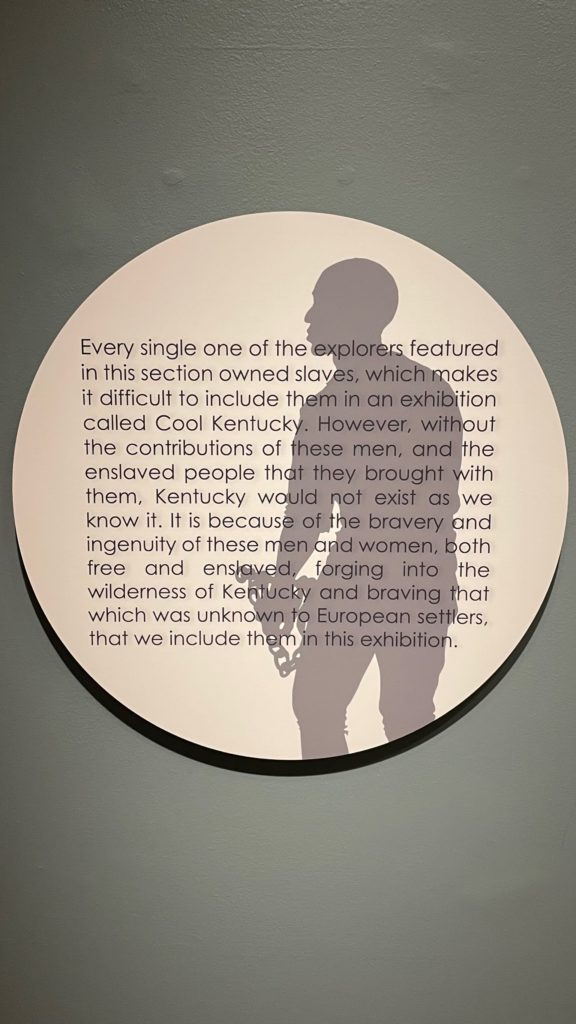 I guess we didn’t get pictures of anything inside the Frazier Museum, but it had a quite the variety of exhibits in it. I thought they did a nice job with the KentuckyShow! film. They were very enthusiastic about Kentucky, that’s for sure. And they’re really proud of their bourbon, too. We roamed around the museum for a couple of hours, then decided to be done when our parking meter ran out. I was tired of reading and we had seen most of it.